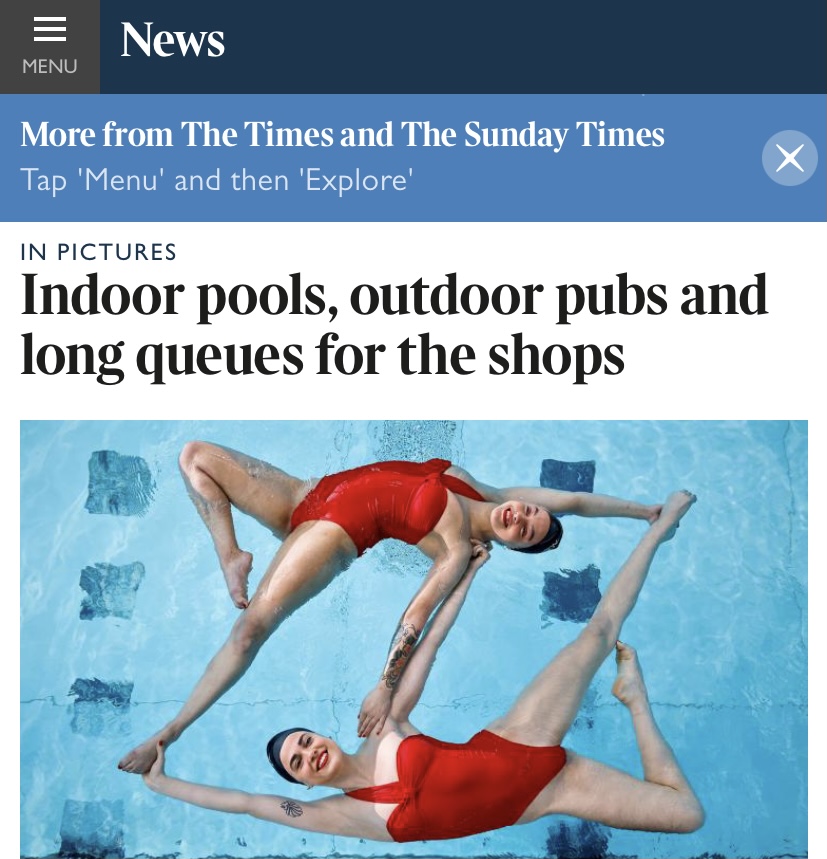 Aquabatix were asked by leisure providers Better UK to provide some synchronized swimmers for a photo shoot to capture the significant moment for the national press. Back in July 2020, the images featuring Aquabatix for the same moment, made most the national media, including the front page of The Observer.